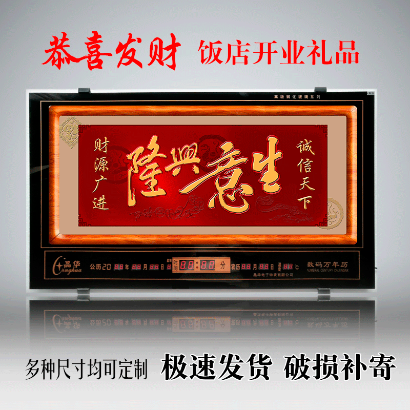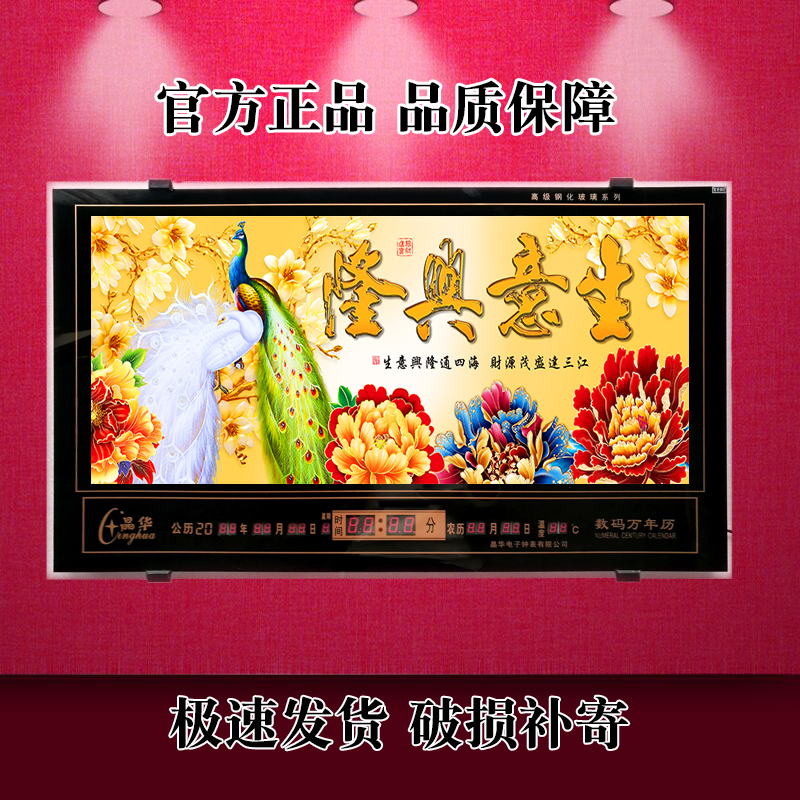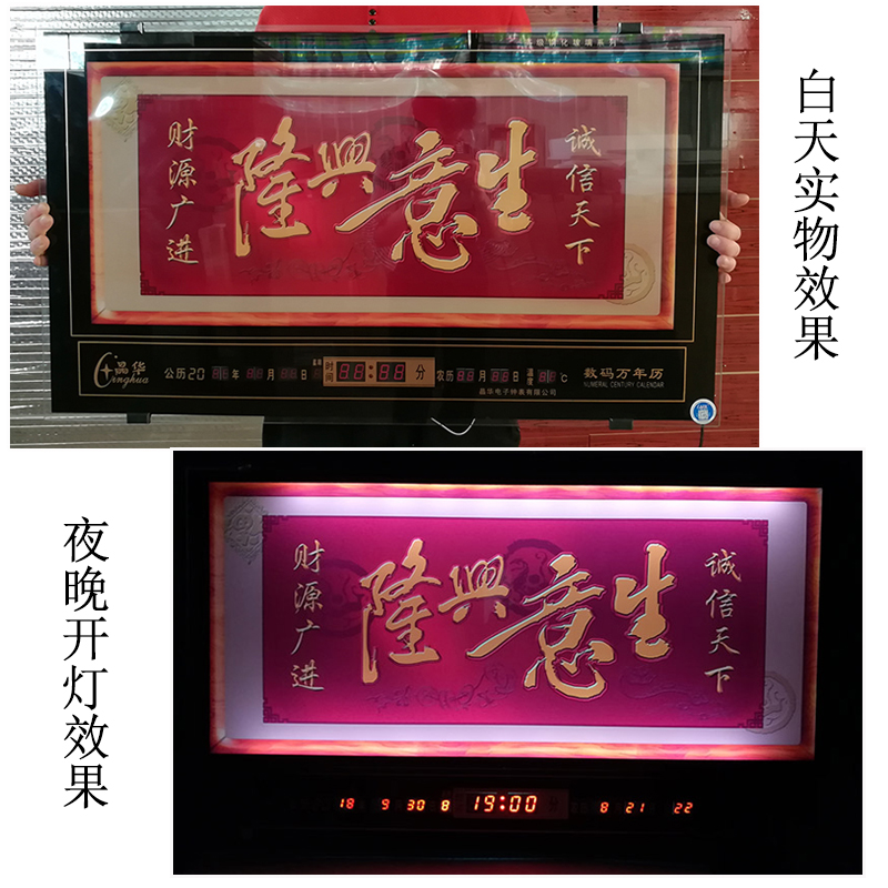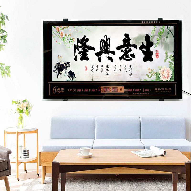 新房客廳裝飾日歷掛鐘,家和風景萬年歷,超薄七彩燈光更漂亮